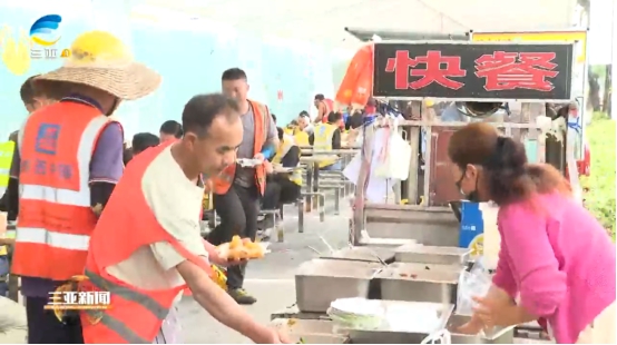 海棠区委社会工作部部长 于少佳:我们海棠区党委本着党建引领基层治理的方向,以免税店三期工地附近为支点建设“椰风餐驿”,来进一步规范流动就餐车的秩序,同时也为我们的农民工兄弟创造一个比较干净卫生的就餐环境。